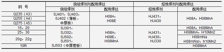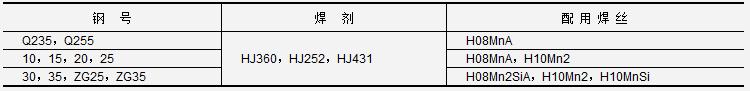 表1常用低碳鋼的埋弧焊焊劑與配用焊絲