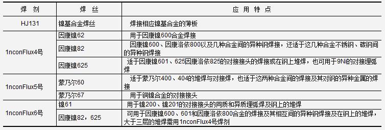 表8 常用耐蝕合金埋弧焊焊劑與配用焊絲的應(yīng)用特點(diǎn)